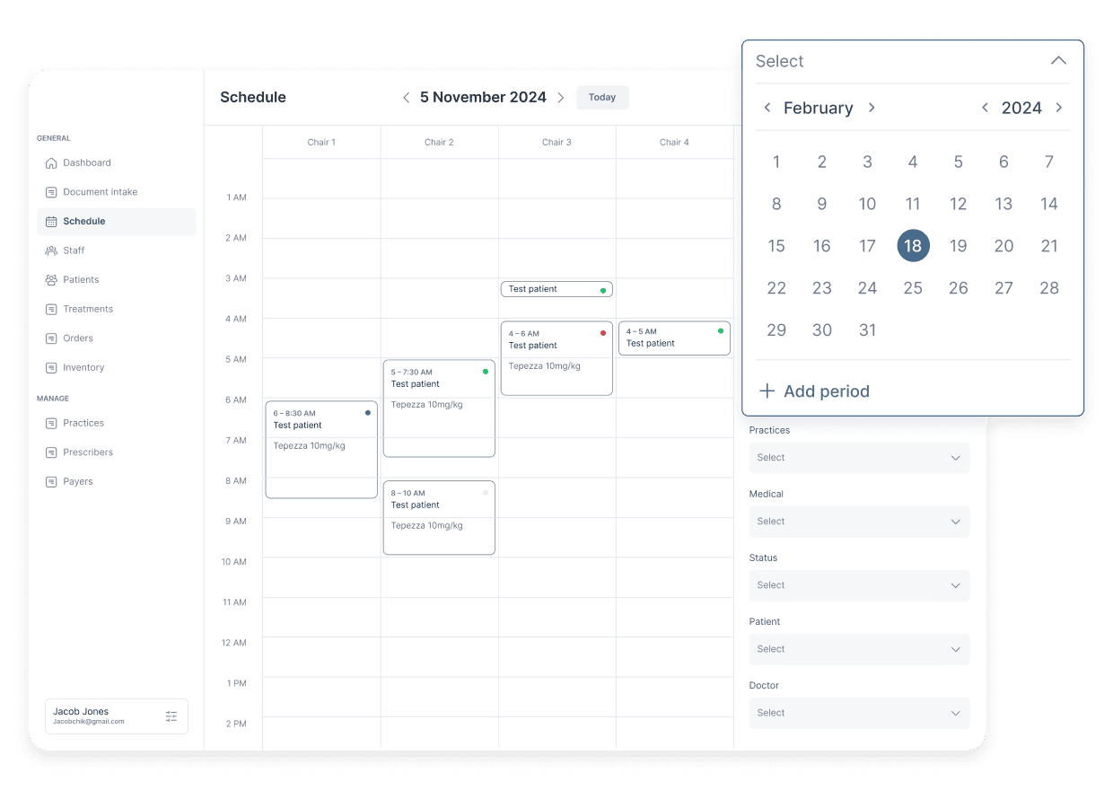 Implemented dynamic scheduling algorithms and resource planning tools that match patient appointments with available chairs, clinician schedules, and medication readiness.