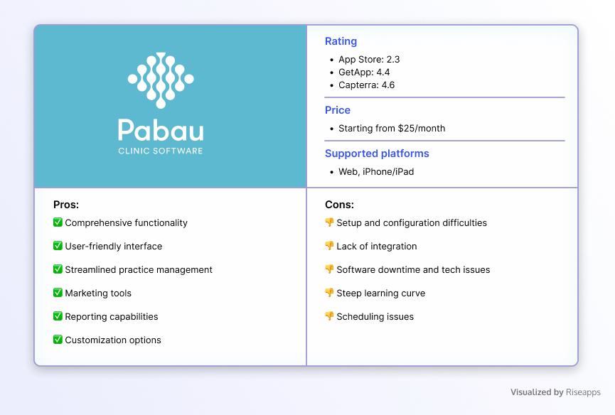 Pabau’s functionality consolidates various aspects of healthcare operations including scheduling, personal health record management, and financial tools into one platform with extra marketing tools, flexible reporting functions, and regular updates.